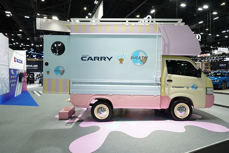 • ในงานนี้ ซูซูกิร่วมมือกับร้าน Duca'tim (ดูคาติม) แฟรนไชส์ไอศกรีม Soft Serve ชื่อดังคุณภาพพรีเมียม เพื่อตอกย้ำแนวคิด 'Carry Your Dream' สานฝันให้ธุรกิจเป็นจริงได้อย่างรวดเร็วและคุ้มค่า
