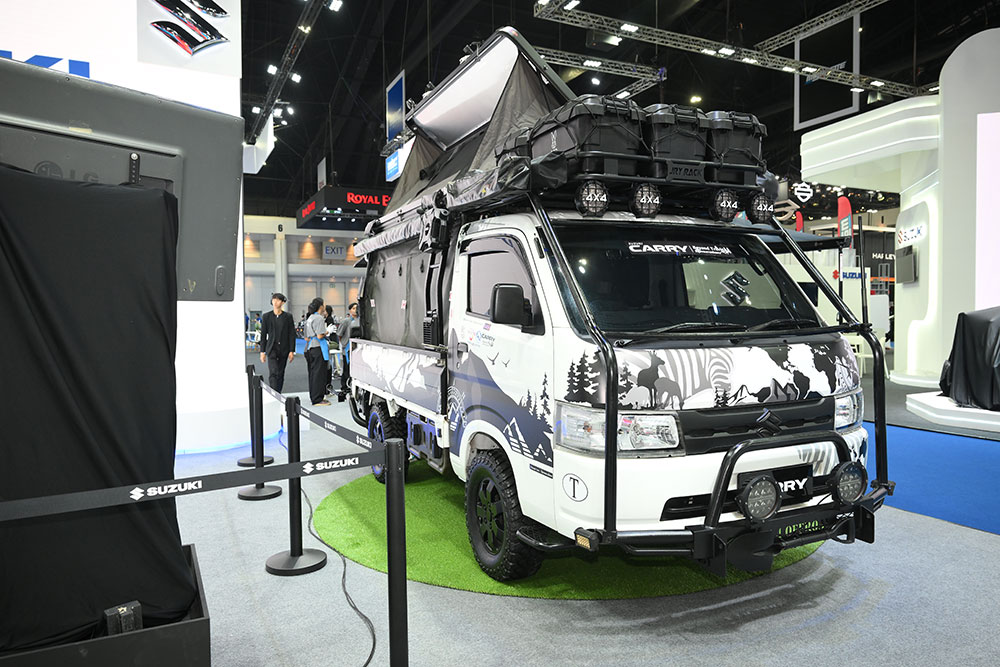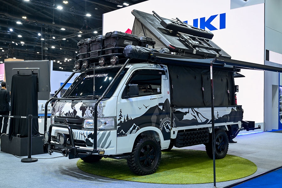 • นอกจากนี้ ภายในงานยังมีการจัดแสดง SUZUKI CARRY เวอร์ชันตกแต่งพิเศษในสไตล์ Camping ซึ่งได้รับแรงบันดาลใจมาจากรถของลูกค้าที่ใช้งานจริงจากเพจ Beyond Travel เพื่อสะท้อนให้เห็นถึงความอเนกประสงค์ที่ไร้ขีดจำกัด ไม่เพียงแต่เป็นเครื่องมือสร้างรายได้สำหรับ SME เท่านั้น แต่ยังสามารถเปลี่ยนเป็นพื้นที่แห่งความสุขเพื่อตอบโจทย์ไลฟ์สไตล์ส่วนตัวได้อย่างสมบูรณ์แบบ