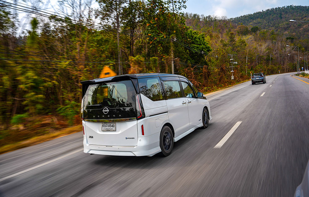 • e-POWER TECHNOLOGY USP หัวใจหลักของ Serena แตกต่างจากคู่แข่ง ด้วยคุณสมบัติของการขับขี่จากมอเตอร์ไฟฟ้า โดยไม่ต้องปรับเปลี่ยนพฤติกรรมการใช้รถ หรือกังวลต่อการชาร์จไฟฟ้า