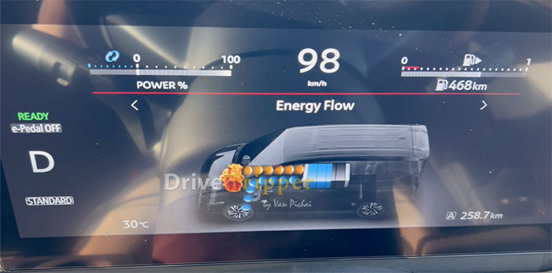 • EV Mode ปรับเปลี่ยนให้รถขับเคลื่อนด้วยพลังงานไฟฟ้าที่เหลือภายในแบตเตอรี่