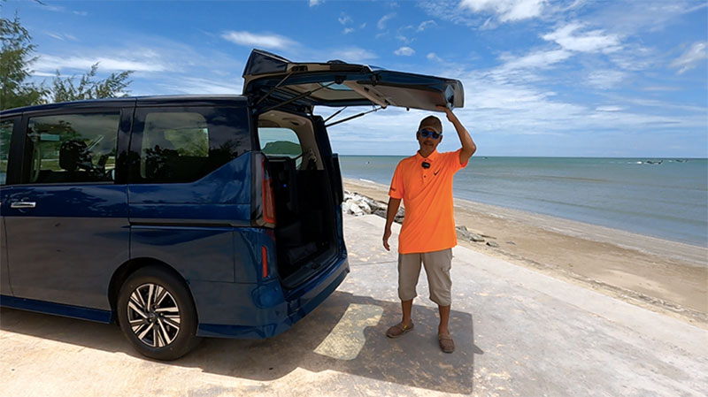 • ฝาท้ายอเนกประสงค์แบบ Dual Back Door หนึ่งเดียวในตลาดรถยนต์แบบ MPV ยังคงเป็นจุดเด่นของ All-New Nissan Serena e-POWER บานประตูน้ำหนักเบา เปิดได้ง่ายทั้งแบบเต็มบาน หรือครึ่งบาน