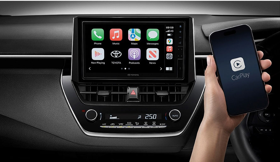 • หน้าจอสัมผัสขนาด 9 นิ้ว รองรับการเชื่อมต่อ Apple CarPlay และ Android Auto แบบไร้สาย