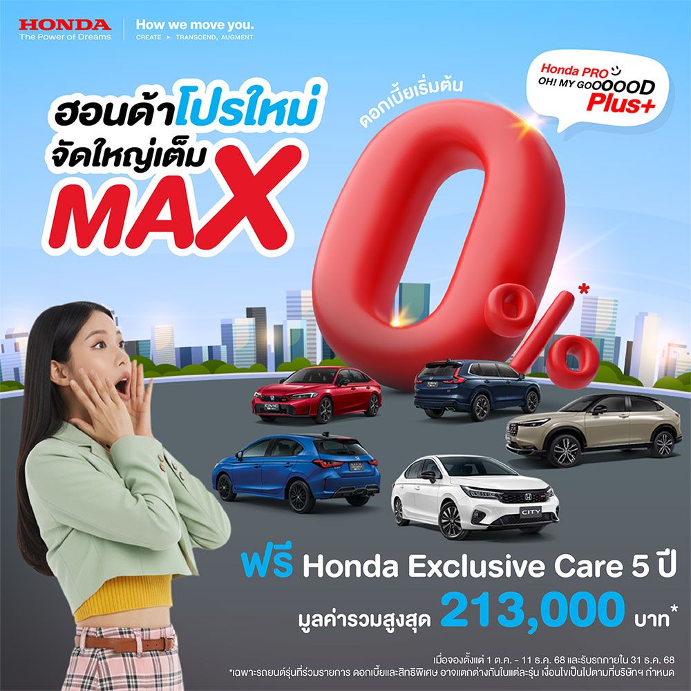 • บริษัท ฮอนด้า ออโตโมบิล (ประเทศไทย) จำกัด จัดหนักส่งท้ายปีผ่านแคมเปญ “Honda Pro OH! MY GOOOOOD PLUS+” โปรใหม่ จัดใหญ่เต็ม MAX City ซี๊ดดด Deal