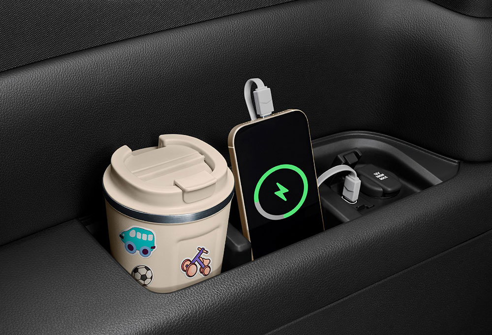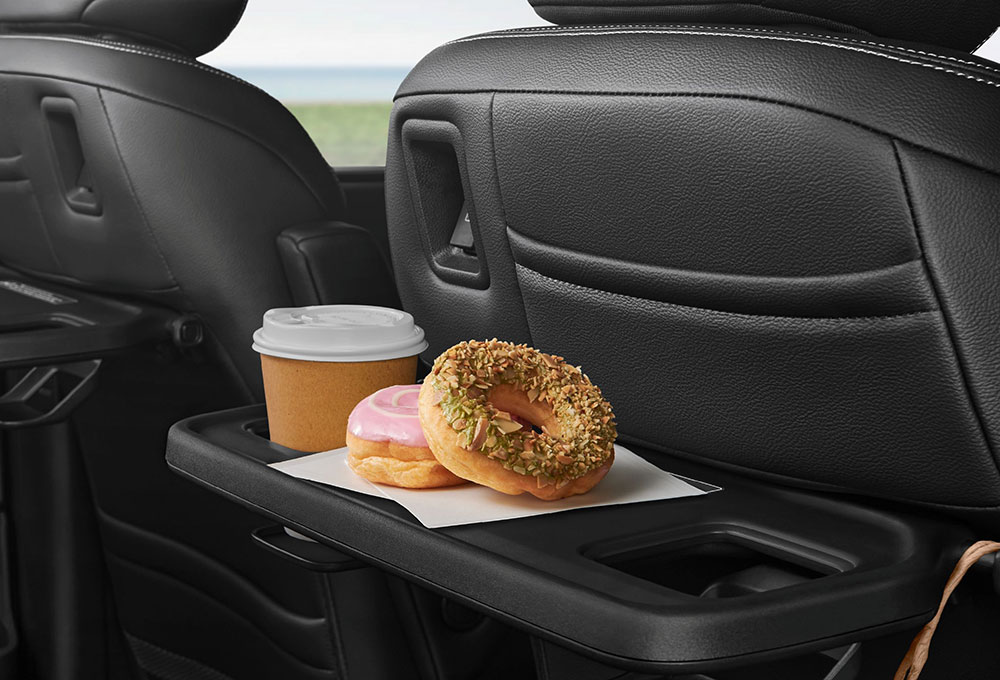 • โต๊ะอเนกประสงค์เบาะนั่งแถว 2 แบบพับเก็บได้ พร้อมที่วางแก้วน้ำ