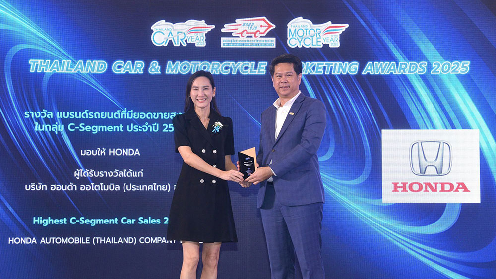 • บริษัท ฮอนด้า ออโตโมบิล (ประเทศไทย) จำกัด ประกาศความสำเร็จ คว้ารางวัลแบรนด์รถยนต์ที่มียอดขายสูงที่สุดในกลุ่ม C-Segment” ในงาน THAILAND CAR OF THE YEAR 2025 จัดโดยสมาคมผู้สื่อข่าวรถยนต์และรถจักรยานยนต์ไทย (สรยท.)