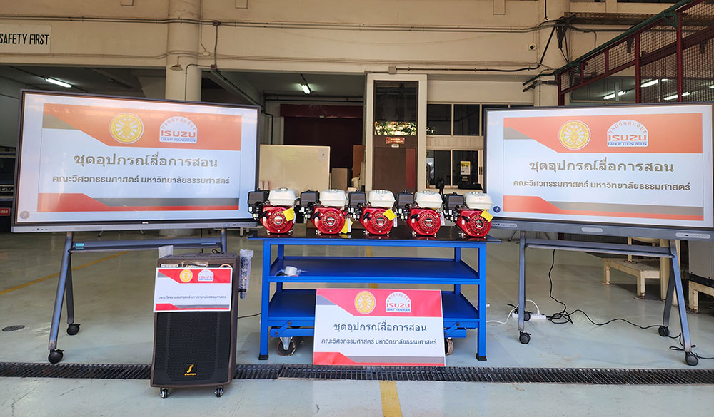 • มูลนิธิกลุ่มอีซูซุ ร่วมกับสถาบันฝึกอบรมตรีเพชรอีซูซุ มอบชุดอุปกรณ์สื่อการสอนด้านวิศวกรรมยานยนต์ มูลค่ารวม 350,000 บาท ให้แก่ คณะวิศวกรรมศาสตร์ มหาวิทยาลัยธรรมศาสตร์ เพื่อสนับสนุนการเรียนการสอน และส่งเสริมการพัฒนาบุคลากร ด้านวิศวกรรมยานยนต์ของประเทศไทย