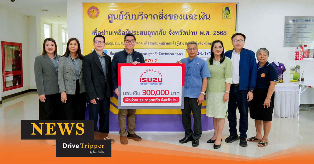 • มอบเงินบริจาคในนามมูลนิธิกลุ่มอีซูซุ มูลค่า 300,000 บาท เพื่อบรรเทาความเดือดร้อนของผู้ที่ได้รับผลกระทบจากอุทกภัยในจังหวัดน่าน โดยมี คุณบรรจง ขุนเพชร รองผู้ว่าราชการจังหวัดน่าน เป็นผู้รับมอบ ณ ศาลากลางจังหวัดน่าน