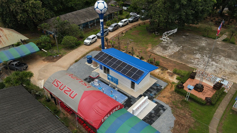 • โครงการ “อีซูซุให้น้ำ...เพื่อชีวิต” ในปีนี้ เพิ่มอุปกรณ์พิเศษในกระบวนการผลิตน้ำดื่มสะอาด นั่นคือการติดตั้งระบบพลังงานแสงอาทิตย์ ช่วยลดค่าไฟฟ้าของโรงเรียนได้กว่า 3,000 บาทต่อเดือน