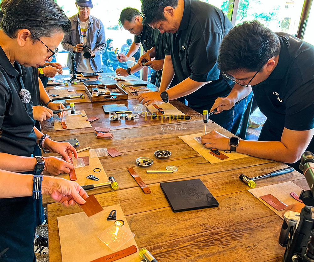 • สื่อมวลชนทำพวงกุญแจหนังเฉพาะตัว ตั้งแต่การตอกตัวอักษร จนไปถึงการเย็บประกอบ เป็นของที่ระลึกของทริปที่เต็มไปด้วยเรื่องราวที่มีความหมาย