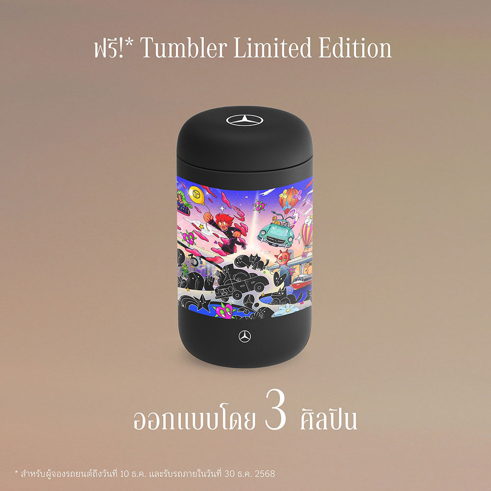 • ของสมนาคุณสุดพิเศษ Tumbler Limited Edition ที่ออกแบบโดยศิลปินรุ่นใหม่ทั้ง 3 ท่าน ได้แก่ “Jeff Aphisit” “Bomfha” และ “MR.HALFMAN”