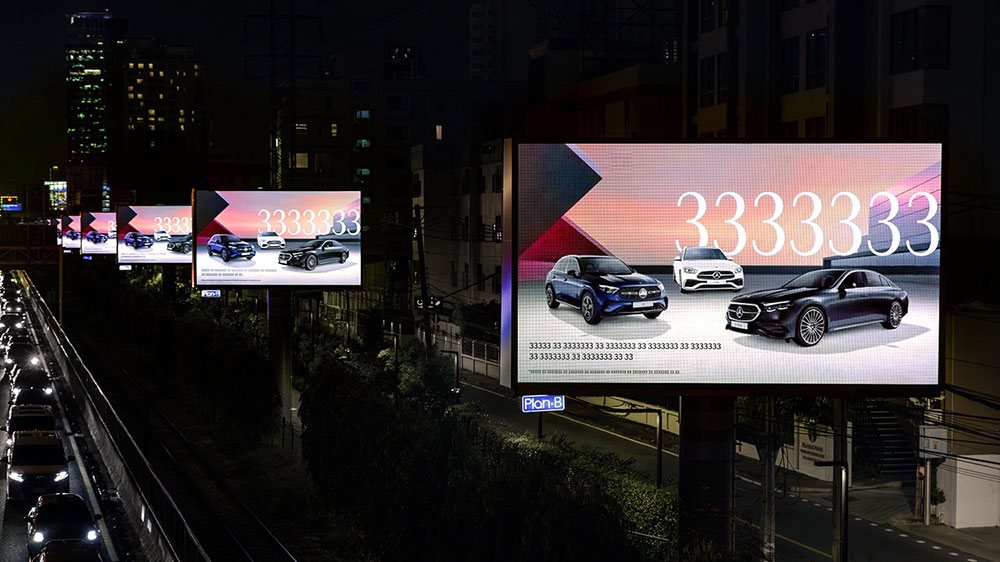 • แต่ชิ้นงานโฆษณาดังกล่าวก็ยังมีจุดสังเกตที่พอให้ผู้คนเดาออกว่าสิ่งนี้ต้องเกี่ยวข้องกับแบรนด์เมอร์เซเดส-เบนซ์ คือภาพของรถยนต์เมอร์เซเดส-เบนซ์ จำนวน 3 รุ่น