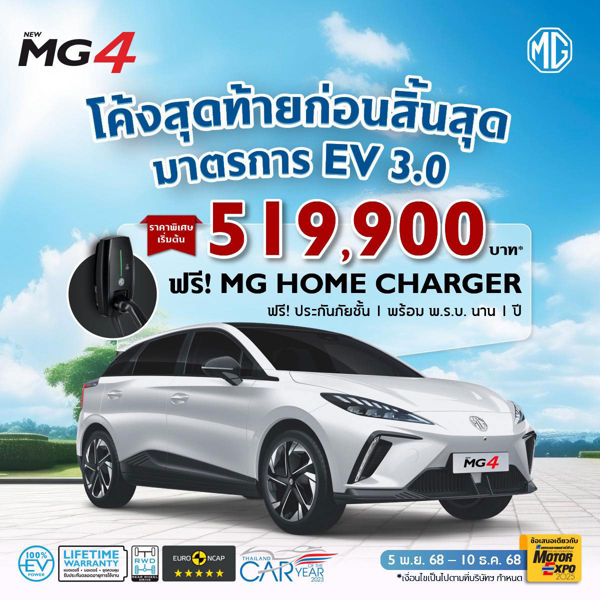 • พิเศษ แลกซื้อ MG HOME CHARGER พร้อมติดตั้ง ในราคา 10,000 บาท