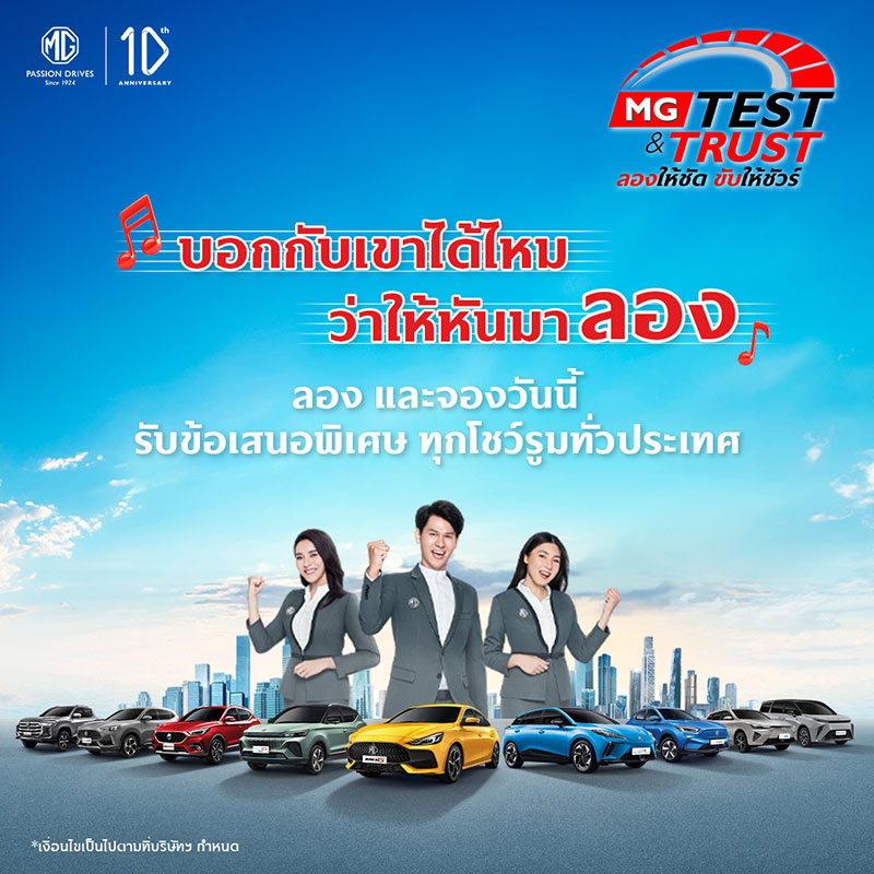 • บริษัท เอสเอไอซี มอเตอร์ - ซีพี จำกัด และ บริษัท เอ็มจี เซลส์ (ประเทศไทย) จำกัด ผู้ผลิตและผู้จำหน่ายรถยนต์ MG ในประเทศไทย จัดแคมเปญ ‘MG TEST & TRUST ลองให้ชัด ขับให้ชัวร์’