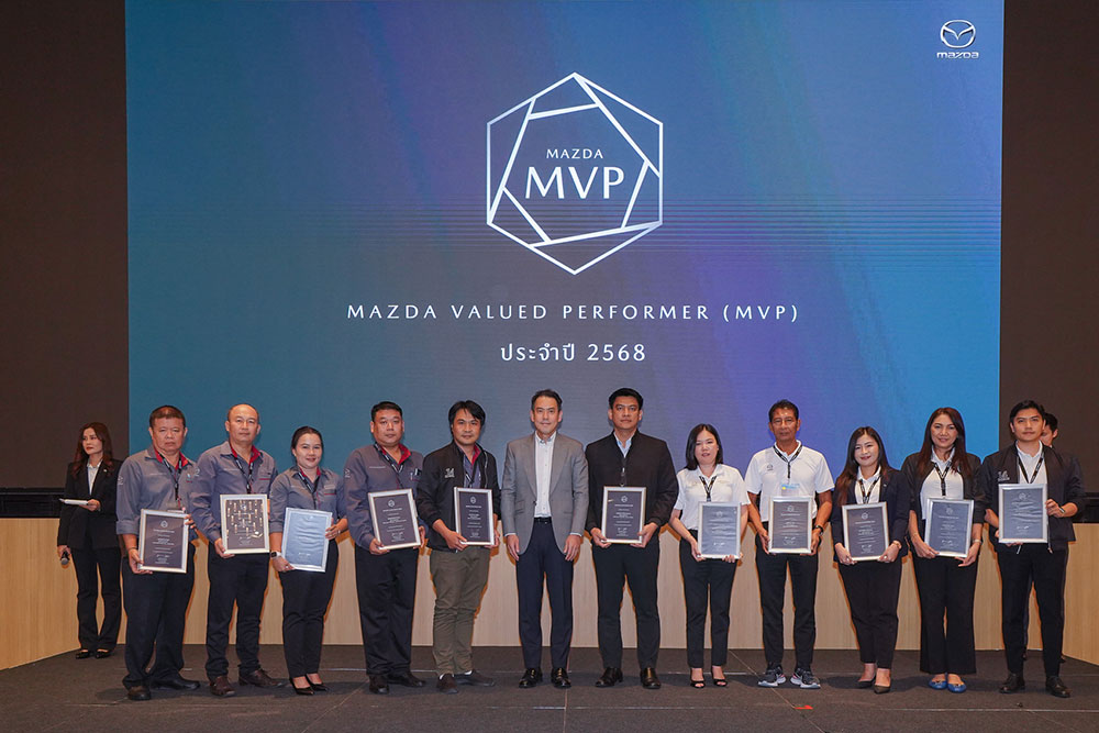 • โดยมีบุคลากรระดับผู้นำทีมของผู้จำหน่ายมาสด้า ทั้งฝ่ายขาย ฝ่ายบริการลูกค้า ฝ่ายซ่อมตัวถังและสี และฝ่ายลูกค้าสัมพันธ์ เข้าร่วมกิจกรรมกว่า 350 คน โดยจัดขึ้น ณ โรงแรม Grand Richmond ระหว่างวันที่ 8-9 กันยายน 2568 ที่ผ่านมา