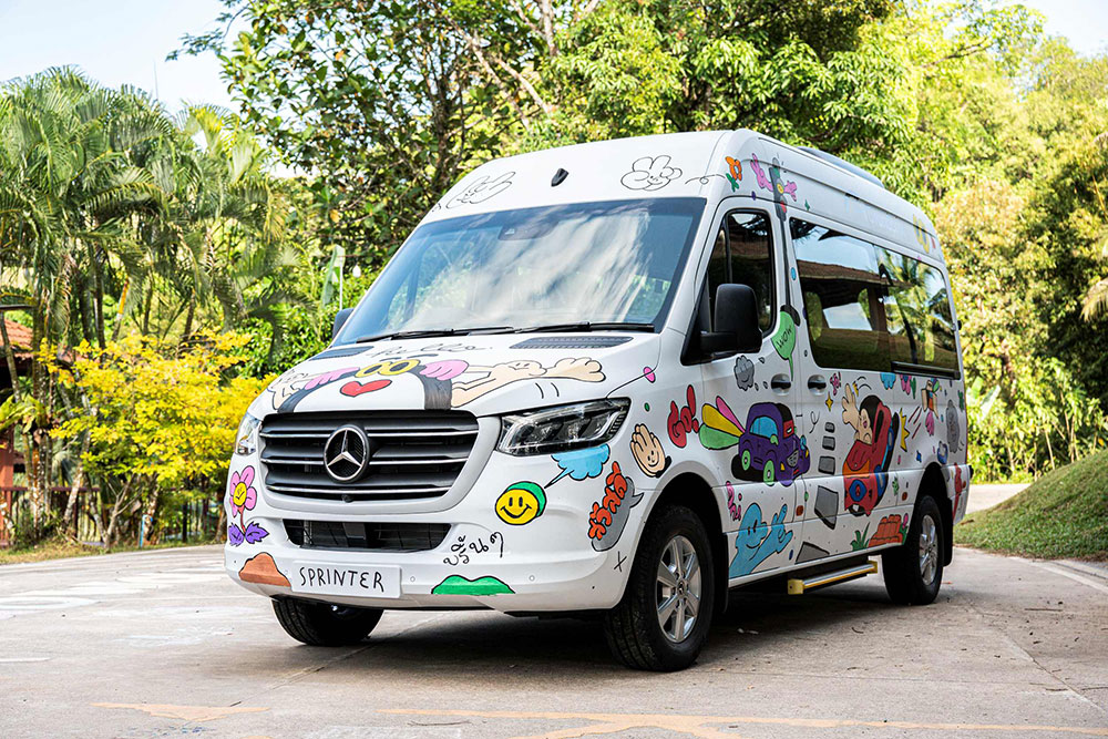 • ผลงานการออกแบบ Mercedes-Benz Sprinter 419 Business รุ่นพิเศษ เกิดขึ้นจากความร่วมมือระหว่างเมอร์เซเดส-เบนซ์ ประเทศไทย และศิลปินนักวาดภาพประกอบชื่อดังอย่าง คุณต๊อด - อารักษ์ อ่อนวิลัย หรือที่รู้จักกันในนาม “SAHRED TOY” ที่มาร่วมดีไซน์ตัวการ์ตูนและลายเส้น ซึ่งสะท้อนแรงบันดาลใจมาจากการเฉลิมฉลอง 140 ปีแห่งนวัตกรรมยานยนต์ (140 Years of Innovation)