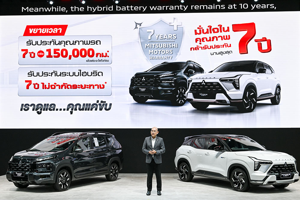 • บริษัท มิตซูบิชิ มอเตอร์ส (ประเทศไทย) จำกัด ชูไฮไลต์เอาใจลูกค้าสายไฮบริดด้วย “โปรแกรมขยายเวลาการรับประกัน (Extended Warranty Program) รูปแบบใหม่” ที่ยกระดับความคุ้มครองทั้งคุณภาพผลิตภัณฑ์ และระบบไฮบริด นานสูงสุด 7 ปี