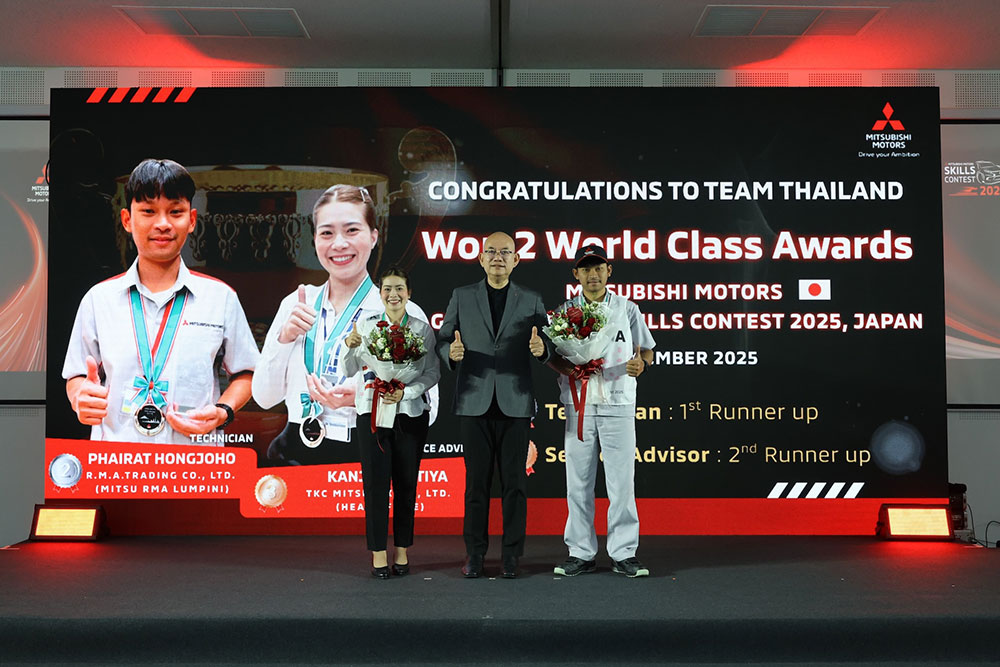 • ยิ่งไปกว่านั้น ความสำเร็จจากการแข่งขันทักษะรถยนต์มิตซูบิชิในประเทศไทย ถือเป็นก้าวสำคัญสู่การสร้างชื่อเสียงบนเวทีระดับนานาชาติของพนักงานผู้จำหน่ายด้าน “ที่ปรึกษางานบริการ” และ “ช่างเทคนิควิเคราะห์ปัญหา” ในการแข่งขันทักษะการบริการระดับโลก (Global Service Skills Contest) ประจำปี 2568 ที่ผ่านมา ซึ่งจัดขึ้นเป็นประจำทุก 2 ปี ที่ประเทศญี่ปุ่น