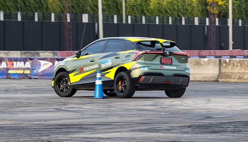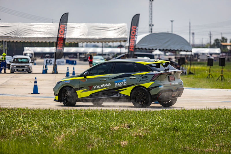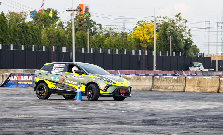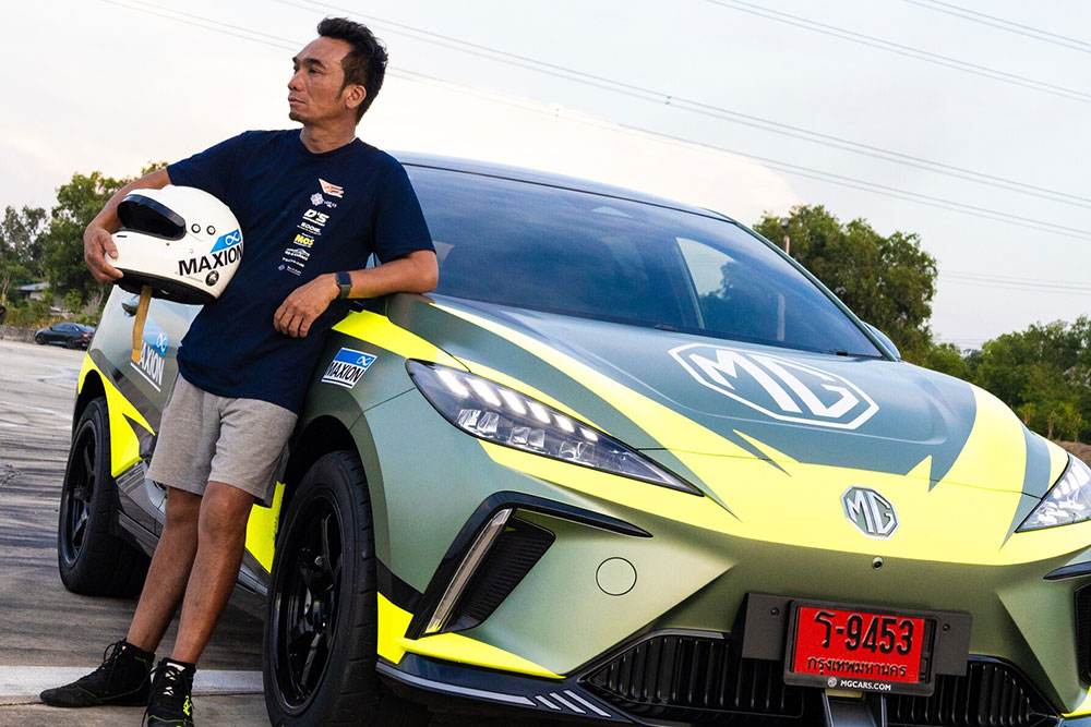 • นายน้อง เอมอมร นักแข่งผู้ขับ NEW MG4 ELECTRIC รุ่น XPOWER เผยว่า สิ่งที่ทำให้รถคันนี้แตกต่างคือ ความสมดุลที่ไร้การปรุงแต่งเกินจำเป็น เพราะแทบไม่มีการปรับเปลี่ยนใด ๆ นอกจากล้อ Maxion Wheel 18 x 8.5 นิ้ว และยาง Yokohama AD09 245/45R18 ที่ช่วยเพิ่มการยึดเกาะ