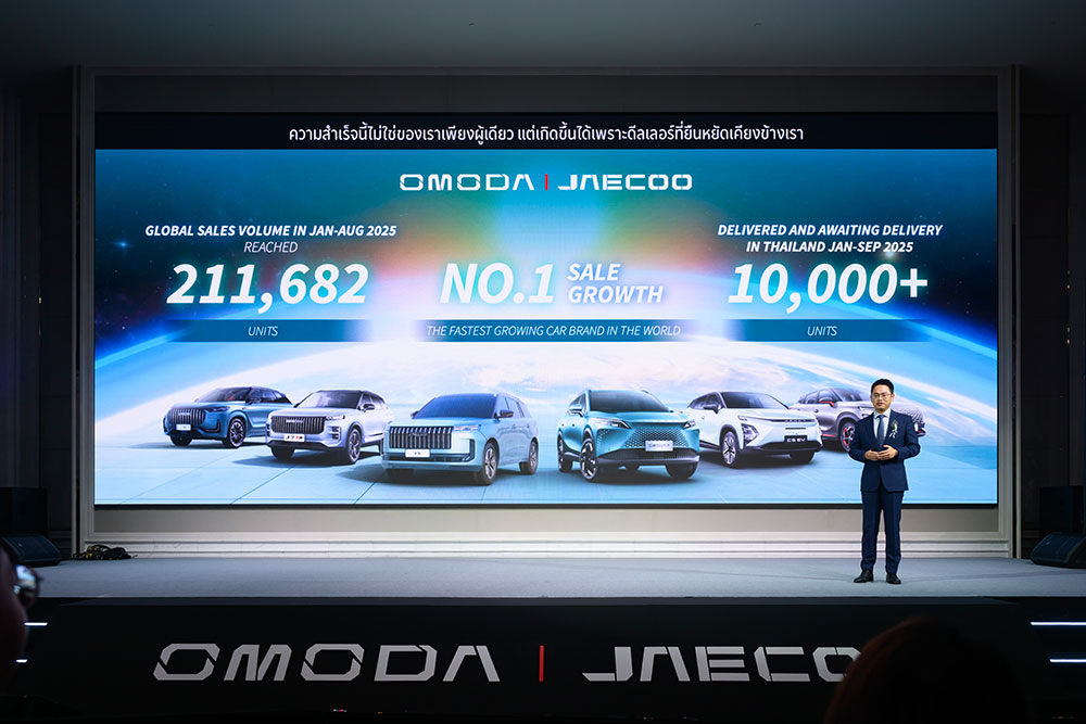 • OMODA & JAECOO (อ่านว่า โอโมด้า แอนด์ เจคู่) ผู้นำนวัตกรรมยานยนต์พลังงานใหม่ระดับพรีเมียม ฉลองครบรอบ 1 ปีของการดำเนินธุรกิจในประเทศไทย พร้อมประกาศถึงผลตอบรับอันน่าประทับใจของ JAECOO 5 EV ที่สามารถทำยอดจองได้กว่า 5,000 คันในเดือนสิงหาคม 2568
