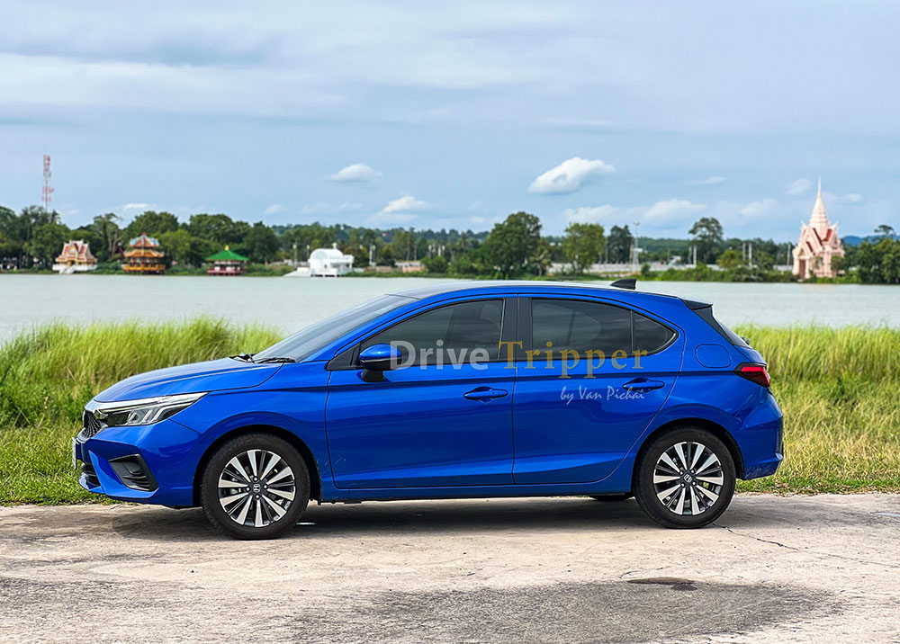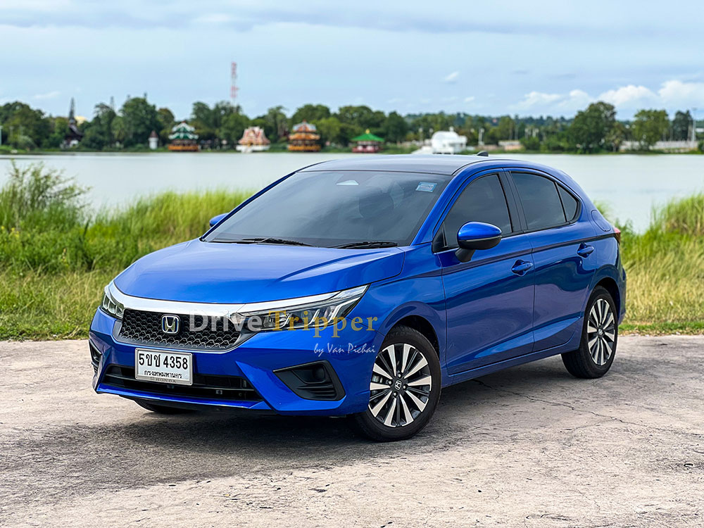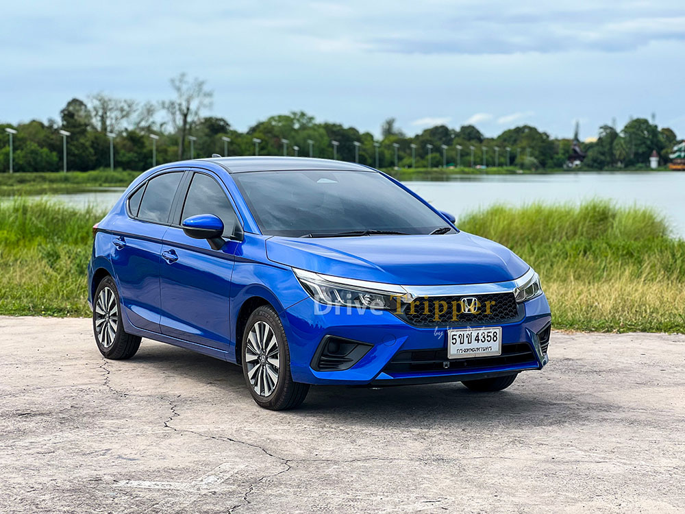 • Honda City Hatchback e:HEV SV ตัวถังสีน้ำเงินบริลเลียนท์ สปอร์ตตี้ (เมทัลลิก) พร้อมหลังคาสีดำแบบ Two-tone
