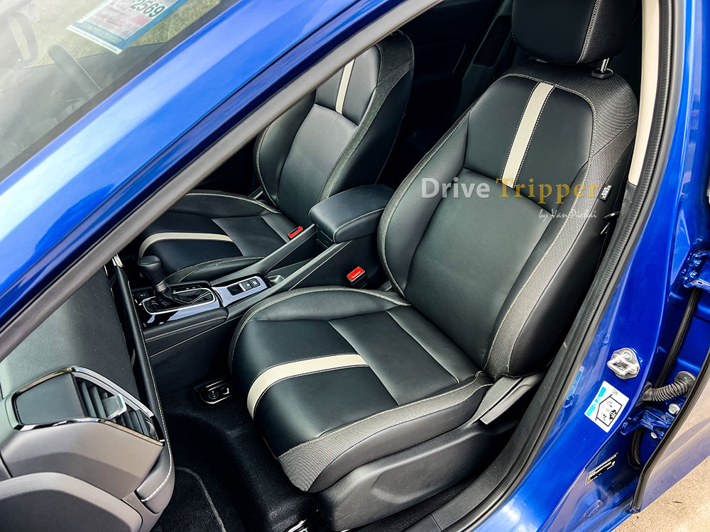 • วัสดุหุ้มเบาะหนังแท้ และหนังสังเคราะห์ตกแต่งด้วยแถบสีเทา