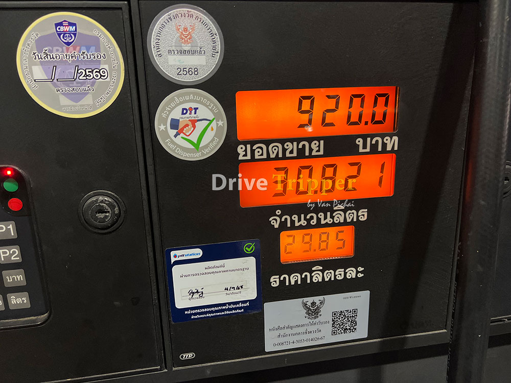 • เติม E20 กลับเข้าไปจนเต็ม 30.82 ลิตร เฉลี่ย 17.83 กิโลเมตรต่อลิตร