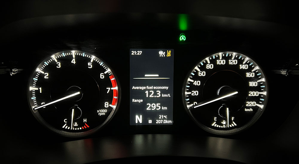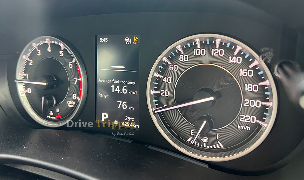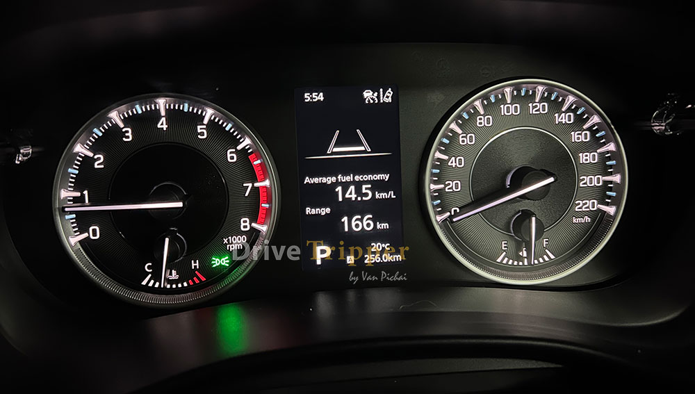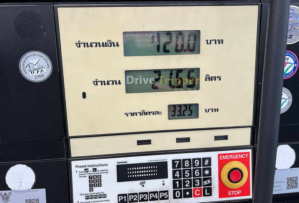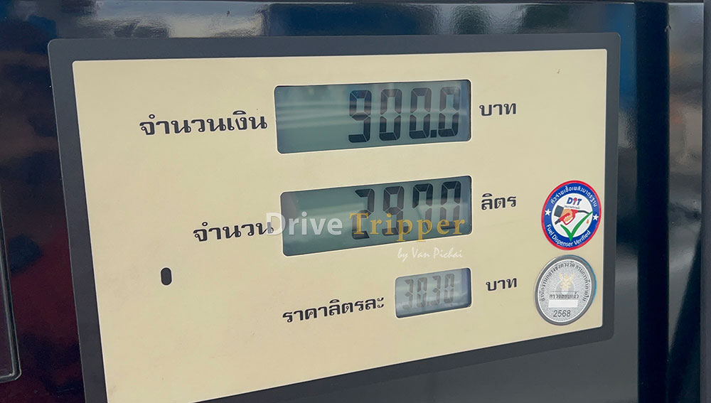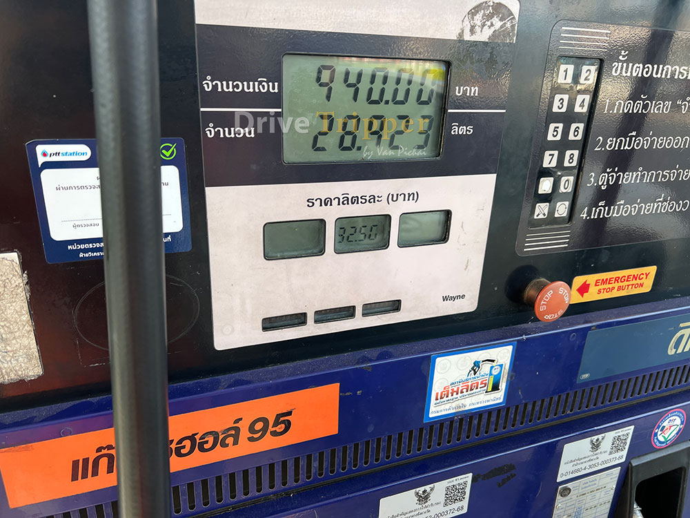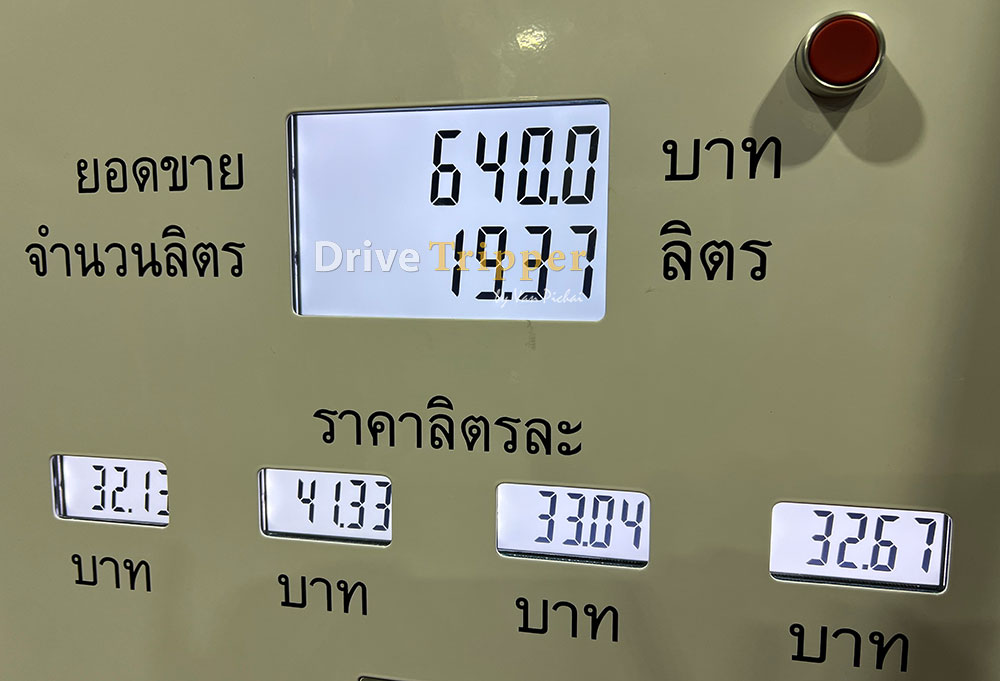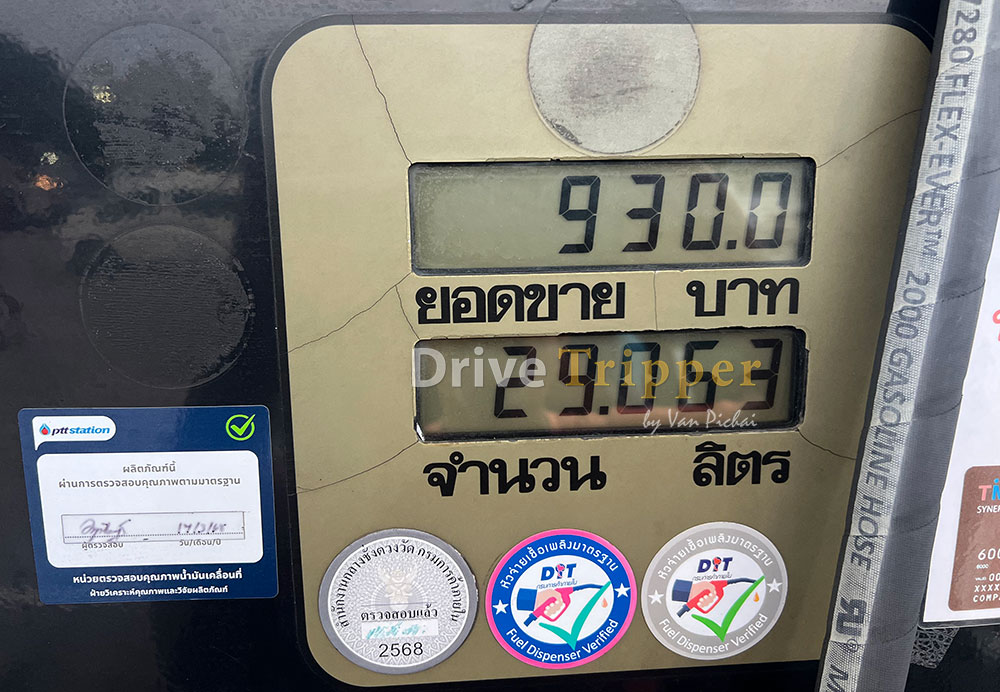 • น้ำมันเต็มถังจากบางนา ศรีราชา แม่กลอง บางปะหัน รวมระยะทาง 549.8 กิโลเมตร น้ำมันเตือน และตัดตัวเลข ขณะเหลือให้วิ่งต่อแสดงบนหน้าปัดประมาณ 50 กิโลเมตร