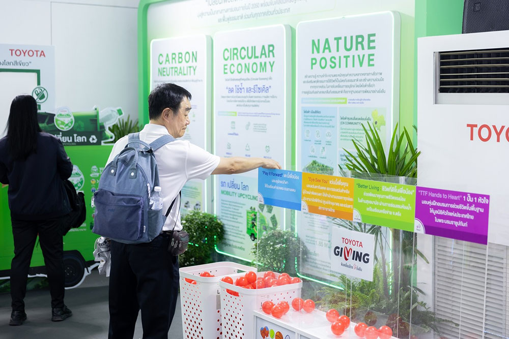 • ภายในงาน โตโยต้าได้นำโครงการต่าง ๆ ภายใต้แนวคิดขับเคลื่อนสู่ความยั่งยืน มาจัดแสดง