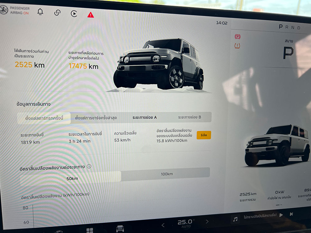 • CHERY V23 4WD PEAK แบตเตอรี่ 91% ขับขี่ได้ระยะทาง 215 กิโลเมตร