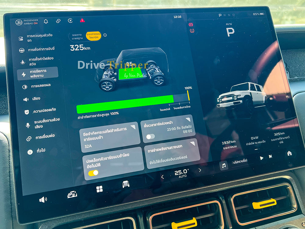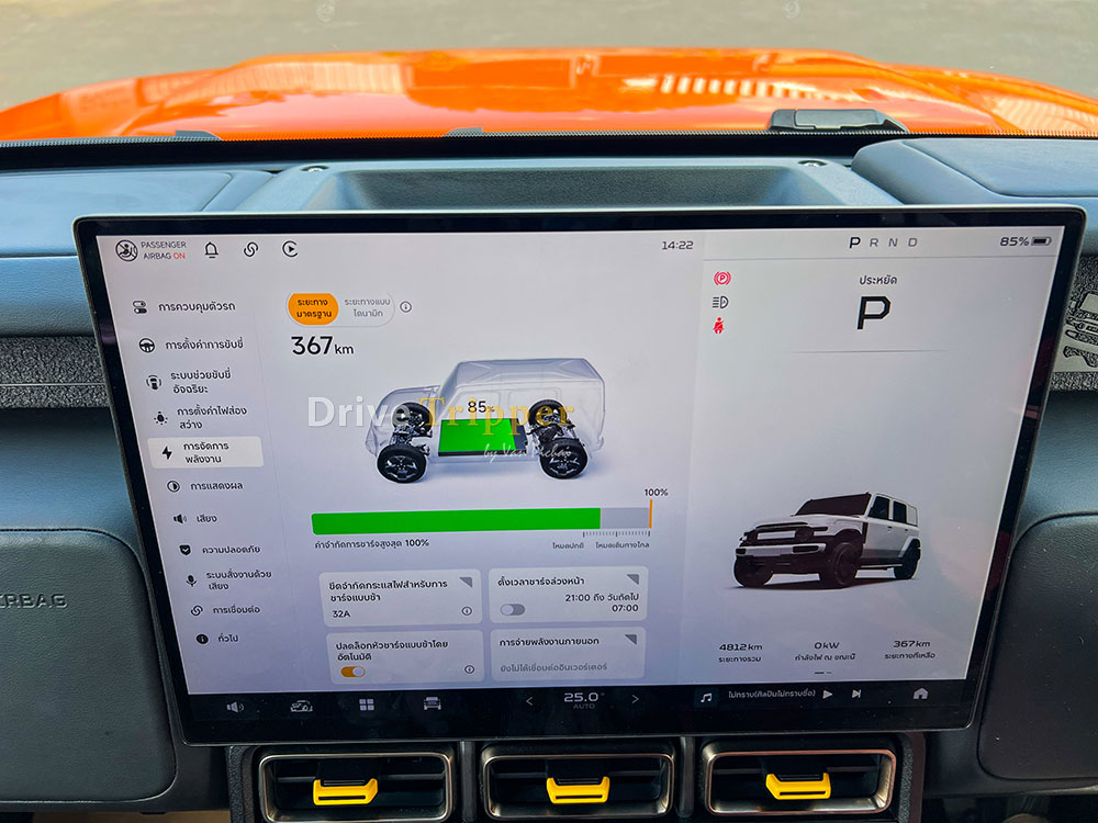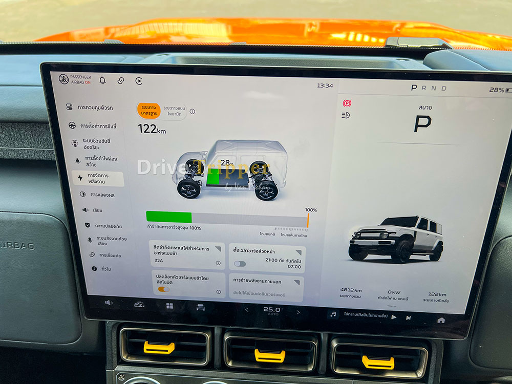 • พลังไฟฟ้าเหลือ 28% (122 กิโลเมตร)