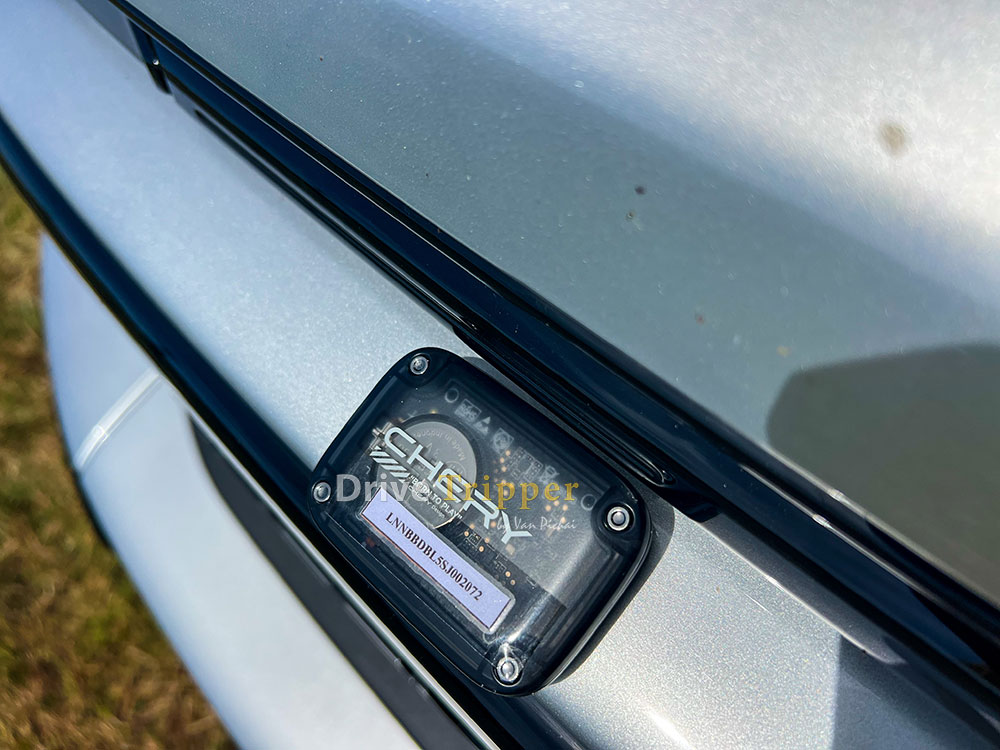 • จุดปลดล็อกหัวชาร์จไฟฟ้าฉุกเฉิน CHERY V23 เป็นสลักสีขาวอยู่ด้านข้างห้องสัมภาระ