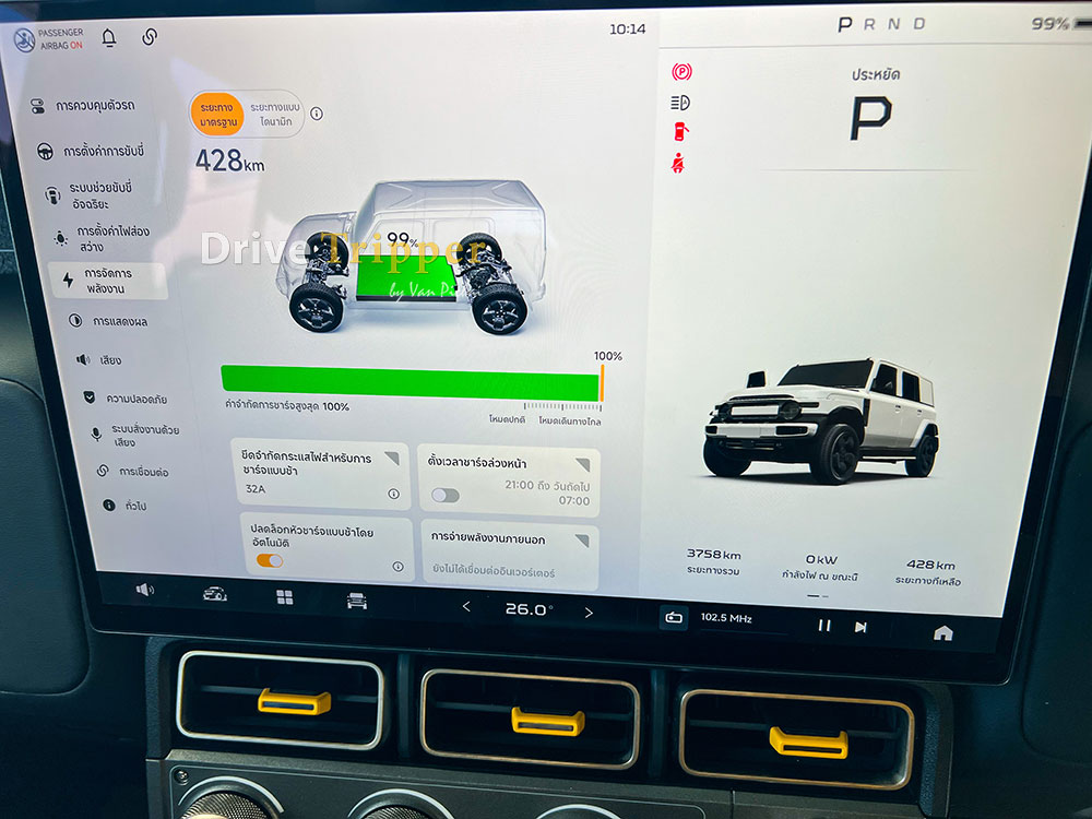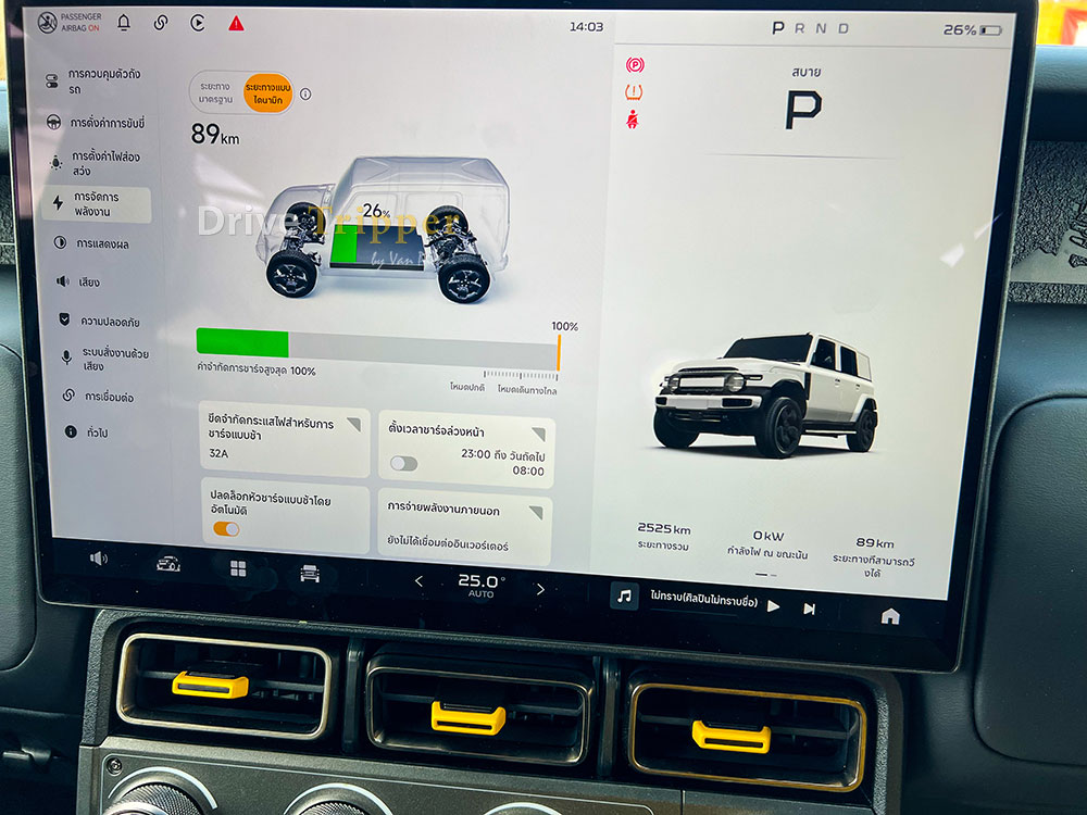 • พลังไฟฟ้าเหลือ 26% (89 กิโลเมตร)