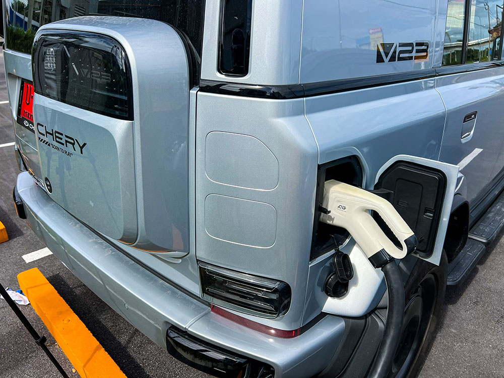 • CHERY V23 รุ่น 4WD แบตเตอรี่ความจุ 81.76 กิโลวัตต์-ชั่วโมง กำลังสูงสุด 155 กิโลวัตต์ หรือ 211 แรงม้า แรงบิดสูงสุด 292 นิวตัน-เมตร มอเตอร์ไฟฟ้าสองตัว