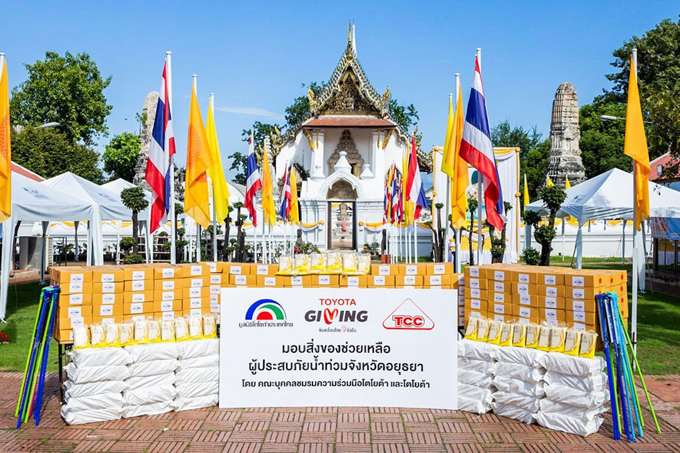• ตลอดระยะเวลาที่ผ่านมา โตโยต้าเร่งให้ความช่วยเหลืออย่างต่อเนื่อง ในหลายจังหวัดที่ได้รับผลกระทบจากสถานการณ์อุทกภัยควบคู่ไปกับการส่งมอบความห่วงใยและขวัญกำลังใจ เพื่อให้สามารถผ่านพ้นวิกฤตและฟื้นฟูกลับสู่สภาวะปกติโดยเร็ววัน