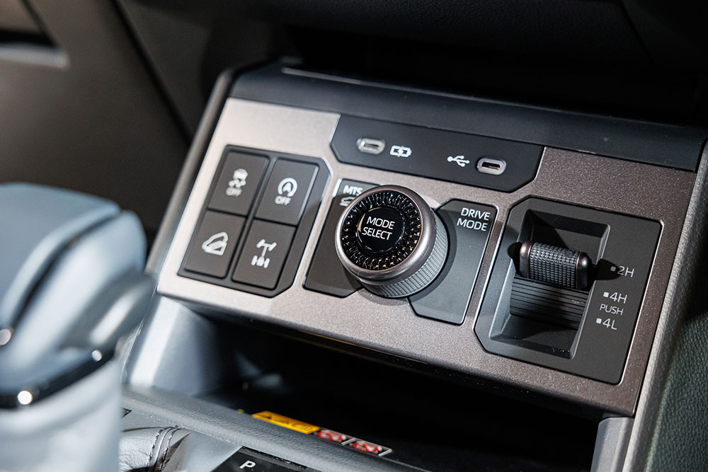 • HILUX TRAVO OVERLAND ระบบ Multi-Terrain Select (MTS) ช่วยปรับการขับขี่ให้เหมาะสมกับสภาพพื้นผิวที่หลากหลาย ทั้งแบบ ดิน ทราย โคลน หิน หรือ หิมะ