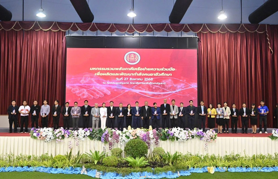 • ในงานมหกรรมรวมพลังภาคีเครือข่ายความร่วมมือ เพื่อผลิตกำลังคนอาชีวศึกษา เมื่อวันที่ 27 สิงหาคม 2568 ณ ห้องประชุมปทุมมาศ วิทยาลัยการอาชีวศึกษปทุมธานี จังหวัดปทุมธานี