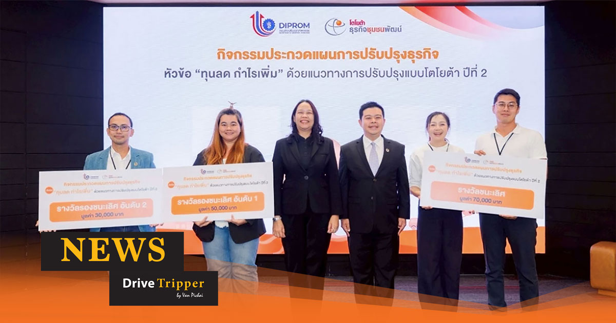 • โตโยต้า ธุรกิจชุมชนพัฒน์ ร่วมกับกรมส่งเสริมอุตสาหกรรม มอบรางวัลแก่วิสาหกิจชุมชน และผู้ประกอบการที่เข้าร่วมกิจกรรม การประกวดแผนการปรับปรุงธุรกิจหัวข้อ “ทุนลด กำไรเพิ่ม ด้วยแนวทางการปรับปรุงธุรกิจแบบโตโยต้า” ปีที่ 2