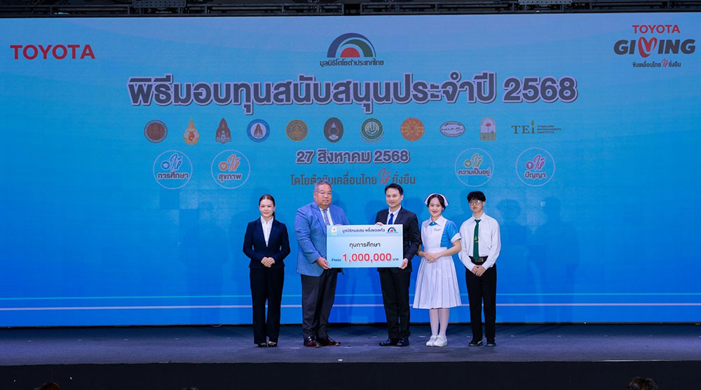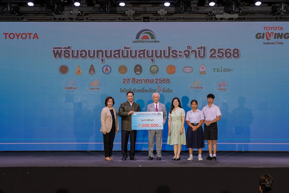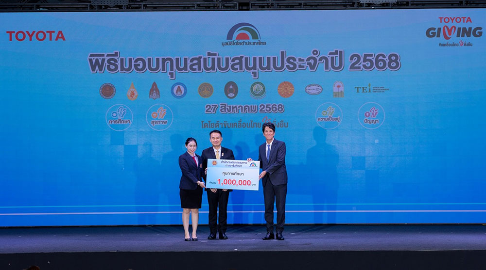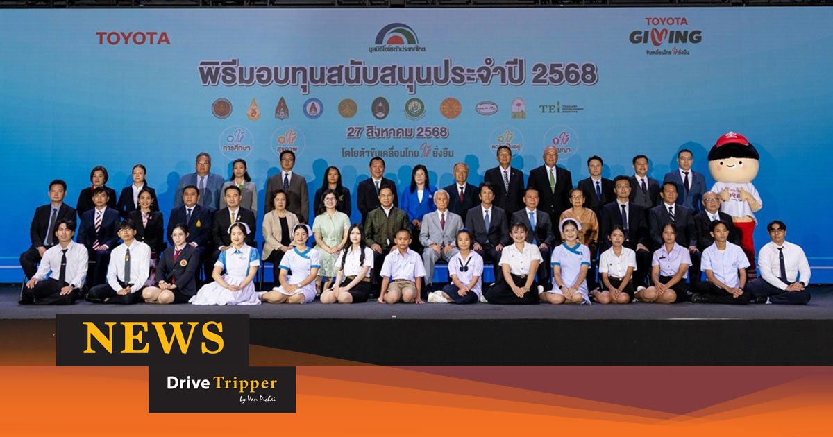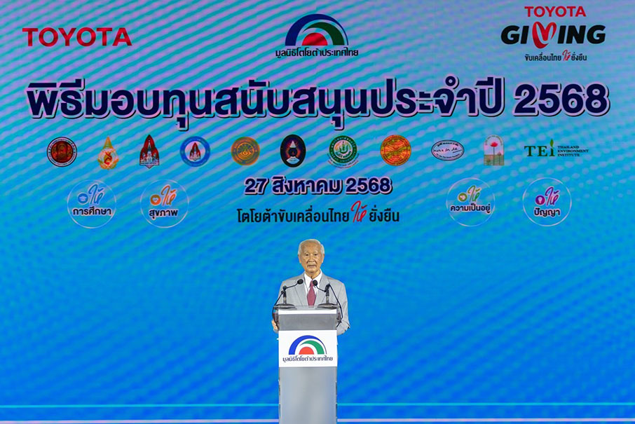 • นายประมนต์ สุธีวงศ์ ประธานมูลนิธิโตโยต้าประเทศไทย พร้อมด้วย นายกลินท์ สารสิน ประธานคณะกรรมการ และนายโนริอากิ ยามาชิตะ กรรมการผู้จัดการใหญ่ บริษัท โตโยต้า มอเตอร์ประเทศไทย จำกัด ร่วมเป็นเกียรติในพิธีมอบทุนสนับสนุนประจำปี 2568 แก่สถาบันการศึกษาและองค์กรสาธารณกุศล รวมมูลค่า 18.69 ล้านบาท เมื่อวันพุธที่ 27 สิงหาคม พ.ศ.2568 ณ Toyota ALIVE บางนา