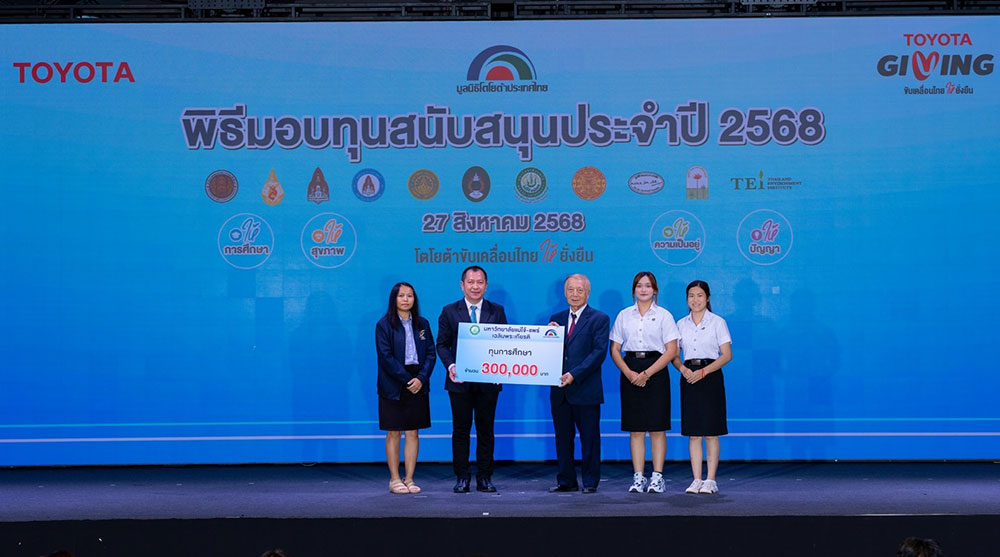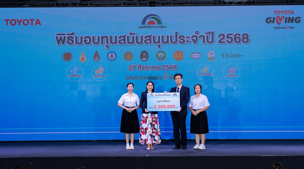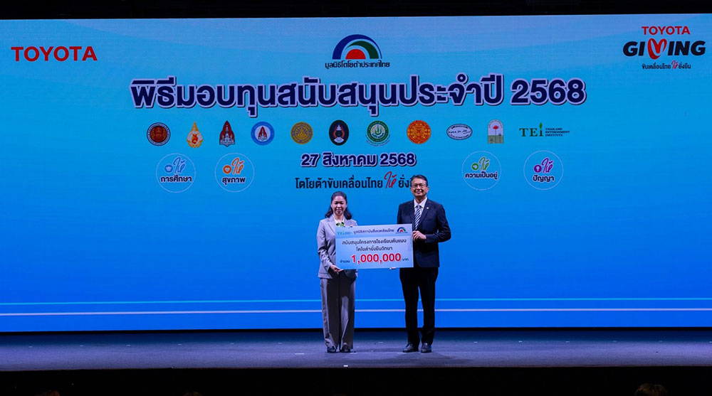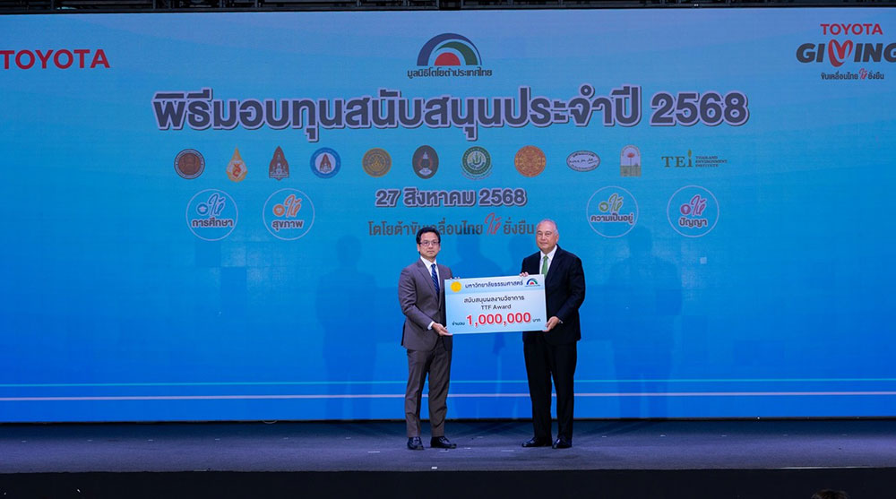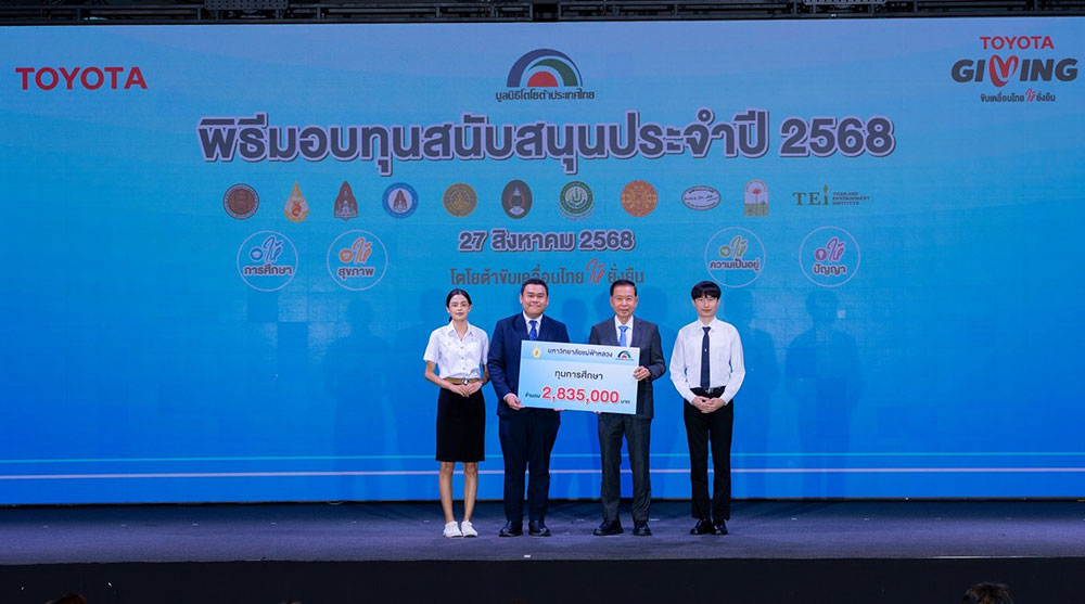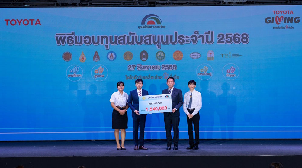• นายประมนต์ สุธีวงศ์ ประธานมูลนิธิโตโยต้าประเทศไทย พร้อมด้วย นายกลินท์ สารสิน ประธานคณะกรรมการ และนายโนริอากิ ยามาชิตะ กรรมการผู้จัดการใหญ่ บริษัท โตโยต้า มอเตอร์ประเทศไทย จำกัด ร่วมเป็นเกียรติในพิธีมอบทุนสนับสนุนประจำปี 2568 แก่สถาบันการศึกษาและองค์กรสาธารณกุศล รวมมูลค่า 18.69 ล้านบาท เมื่อวันพุธที่ 27 สิงหาคม พ.ศ.2568 ณ Toyota ALIVE บางนา