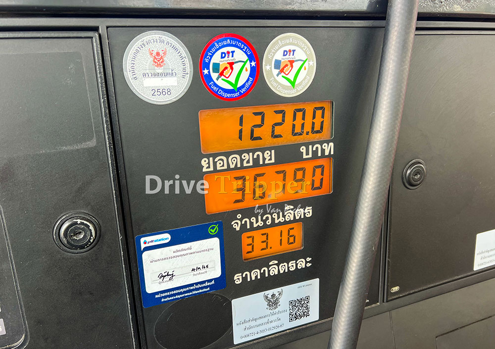 • เติมกลับเต็ม 34.56 ลิตร (ความจุถังน้ำมัน 42 ลิตร)