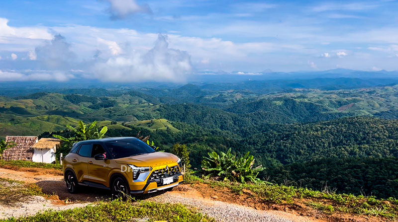 • เช้าตรู่ ALL-NEW MITSUBISHI XFORCE HEV ออกจากตัวเมืองแพร่ ประมาณ 25 กิโลเมตร เช็คอินที่ “ภูทัพฟ้า 360 องศา”
