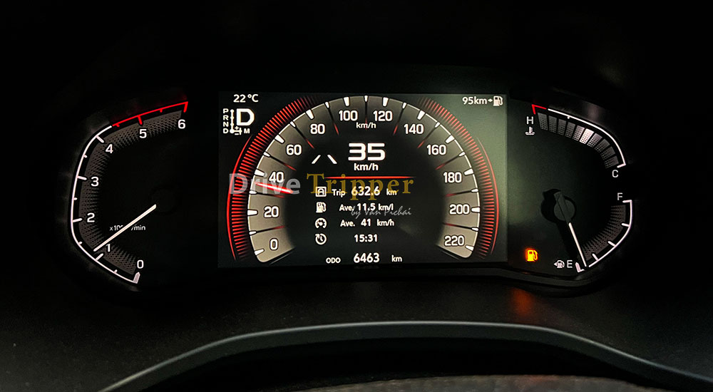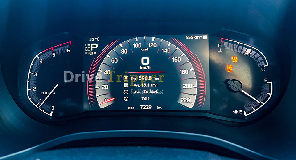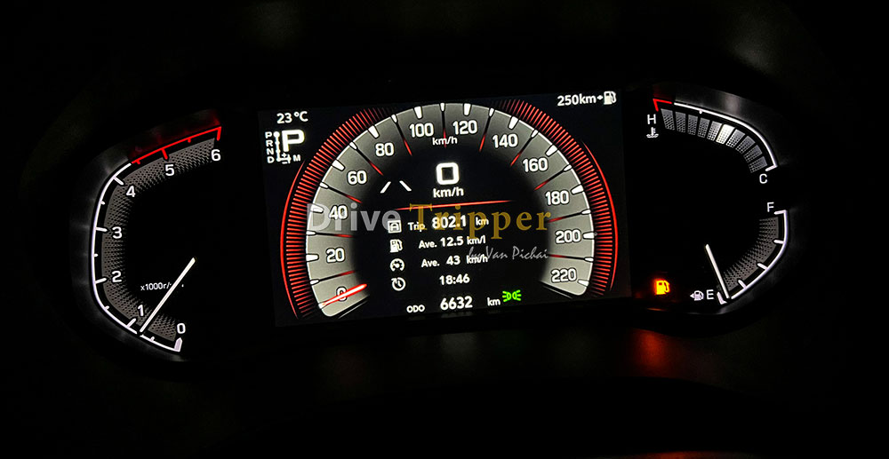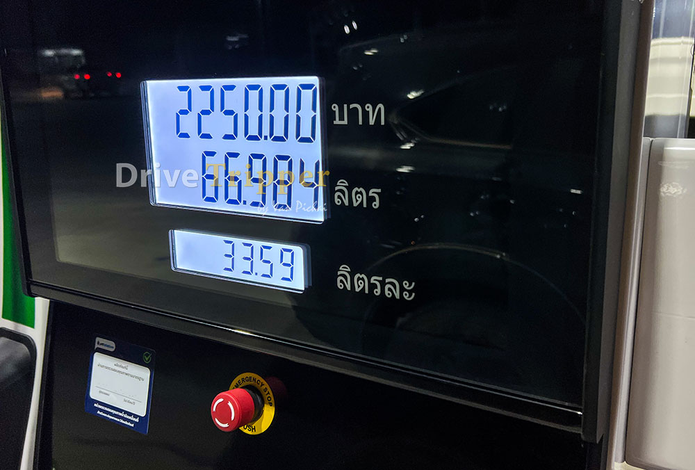 • ขับขี่ระยะทาง 596.8 กิโลเมตร บนหน้าปัดแสดง 15.1 กิโลเมตรต่อลิตร