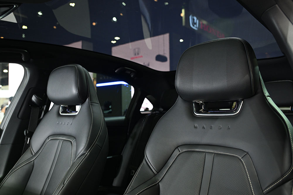 • ยกระดับภายในห้องโดยสารด้วยวัสดุหนัง Nappa/Suede สีแทน ออกแบบตามแนวคิด Kodo-Soul of Motion