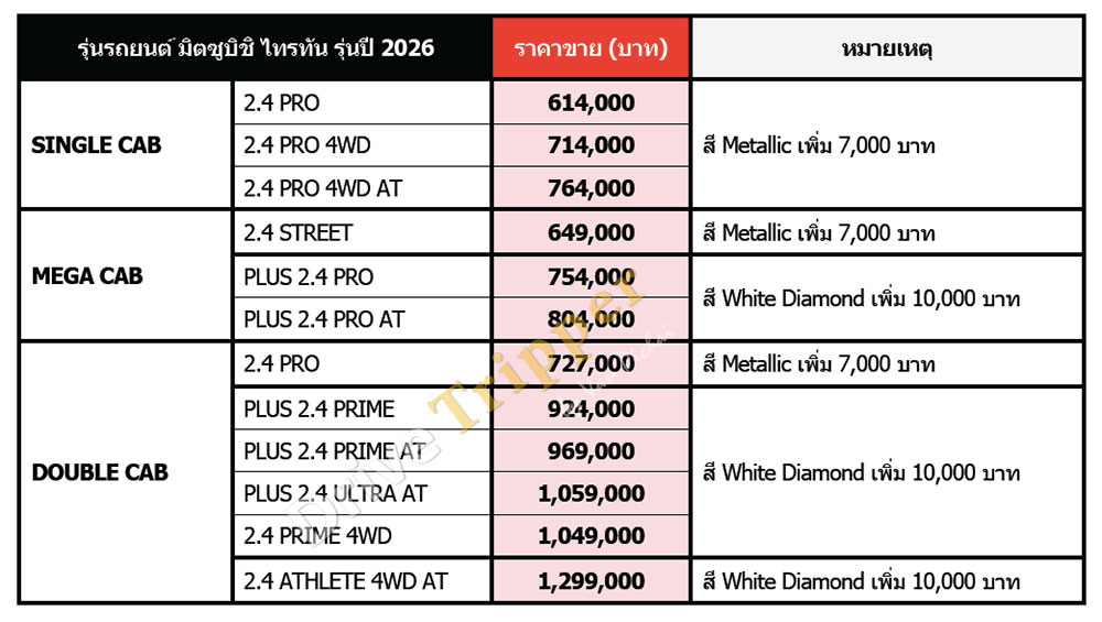 • มิตซูบิชิ ไทรทัน สตรีท ใหม่ ราคาจำหน่ายอยู่ที่ 649,000 บาท