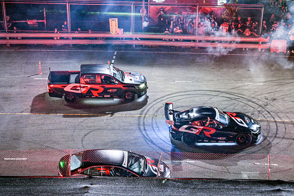 • ชมไนท์โชว์สุดตระการตากับ GR PERFORMANCE SHOW การแสดงของรถตระกูล GR และ GR TRIPLE DRIFT SHOW การโชว์ดริฟต์โดยนักขับมืออาชีพ เป้ และ ปอนด์ Drive to Drift ร่วมด้วย พีท ทองเจือ