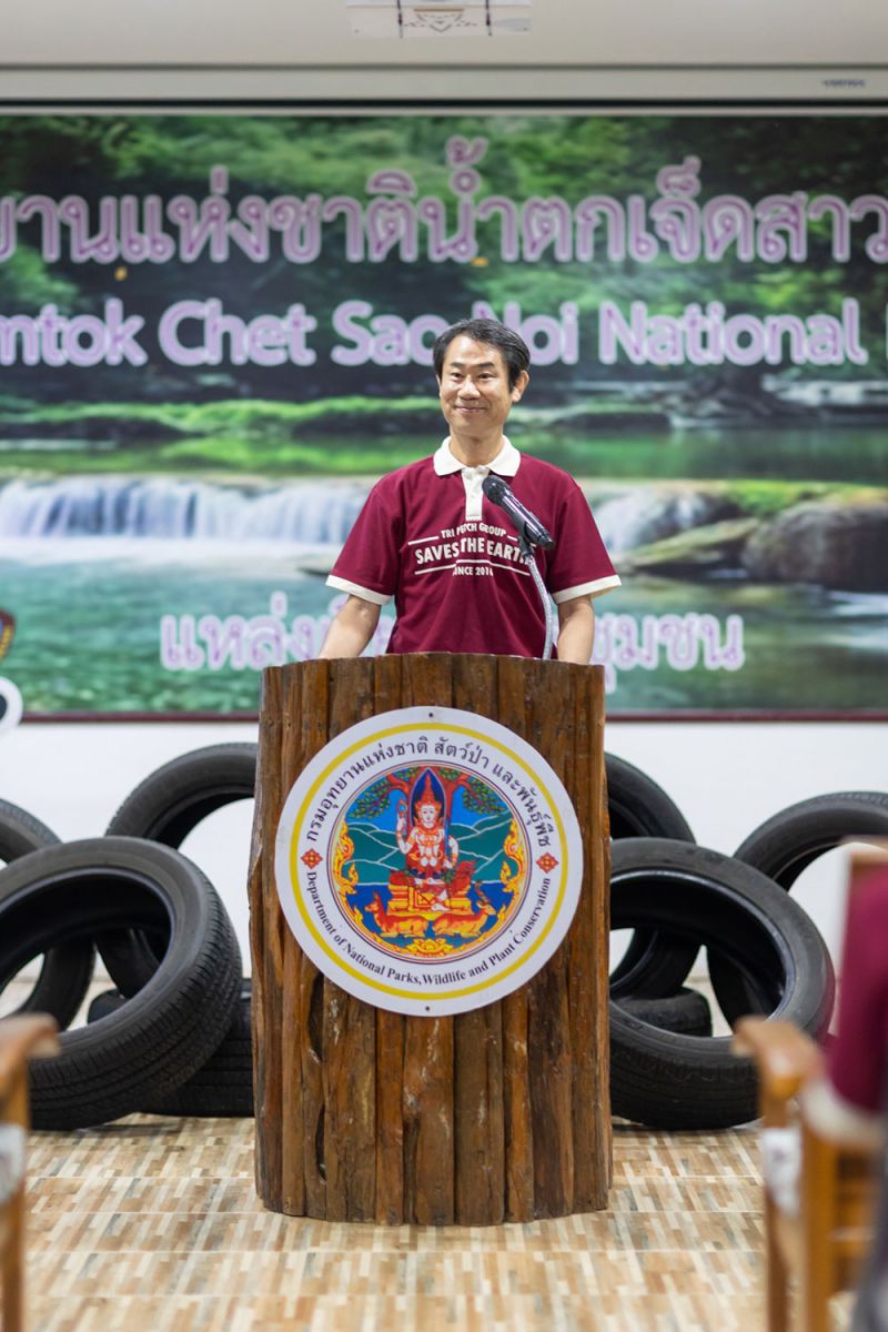 • มร. ทาคาชิ ฮาตะ ประธานเจ้าหน้าที่บริหารกลุ่มตรีเพชร และกรรมการผู้จัดการ บริษัท ตรีเพชรอีซูซุเซลส์ จำกัด กล่าวว่า กลุ่มตรีเพชรรู้สึกยินดีเป็นอย่างยิ่งที่ได้กลับมาจัดกิจกรรมเพื่อสิ่งแวดล้อมขึ้นที่อุทยานแห่งชาติน้ำตกเจ็ดสาวน้อย อำเภอมวกเหล็ก จังหวัดสระบุรี อีกครั้ง