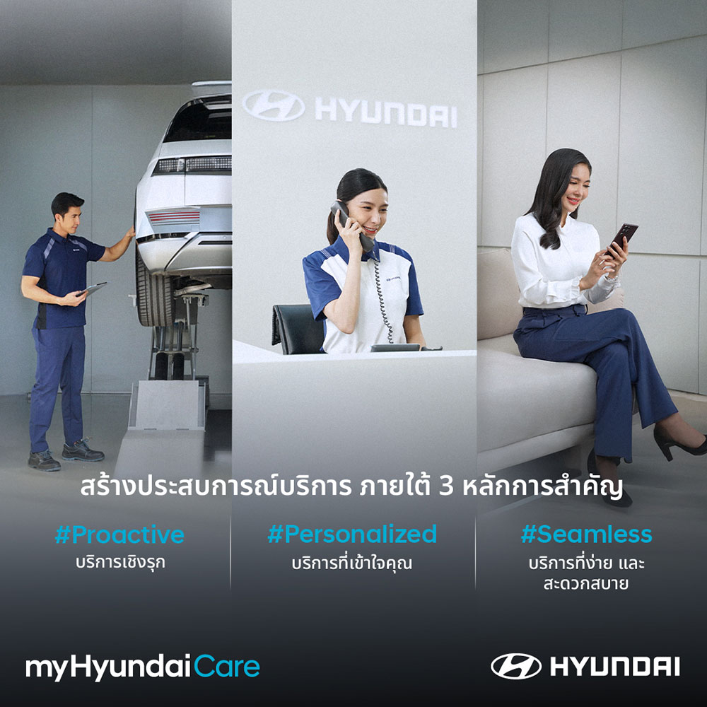 • myHyundaiCare ถูกพัฒนาขึ้นเพื่อเป็นกรอบมาตรฐานของฮุนไดในทุกประเทศทั่วโลก ที่รวมทุกบริการหลังการขายของฮุนไดไว้ภายใต้พันธกิจเดียวกัน มุ่งเน้นการสร้างระบบนิเวศการดูแลลูกค้าแบบต่อเนื่องและครบวงจร ตั้งแต่การบำรุงรักษาตามระยะทางและซ่อมบำรุง
