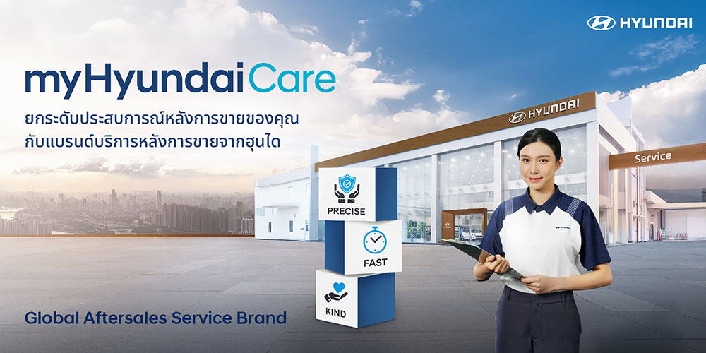 • บริษัท ฮุนได โมบิลิตี้ (ประเทศไทย) จำกัด เดินหน้าเสริมความมั่นใจลูกค้าไทย เปิดตัว “myHyundaiCare” แบรนด์บริการหลังการขายมาตรฐานสากล ที่จะเป็นก้าวยุทธศาสตร์สำคัญในการมอบ “ประสบการณ์การเป็นเจ้าของรถยนต์ฮุนไดที่สมบูรณ์แบบ” ให้กับลูกค้าชาวไทยอย่างครอบคลุมทุกมิติ ทั้งด้านความสะดวก ความมั่นใจ และคุณภาพ